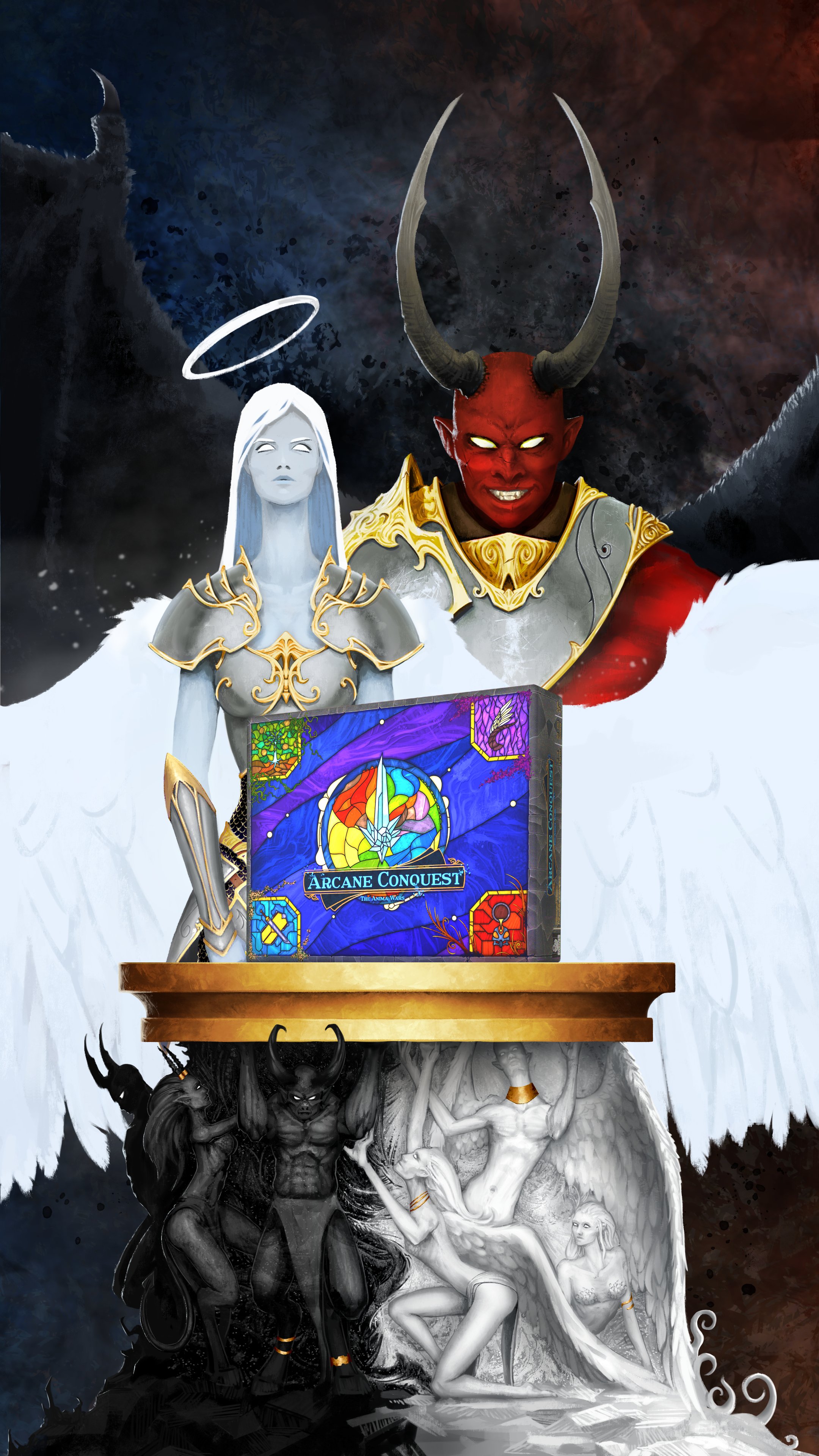Been working on the art for a board came created for Asaeil Games that should be coming out very soon. Arcane Conquest is a tabletop strategy game designed to be easy to learn and have manageable play length (no more devoting an entire afternoon). It is meant to play like a board game version of Heroes of Might and Magic, with base development, army movement, and resource management. Follow on my social and sign up for updates on the landing page to be ready when backing time hits!